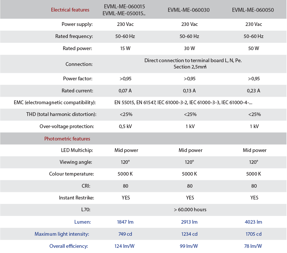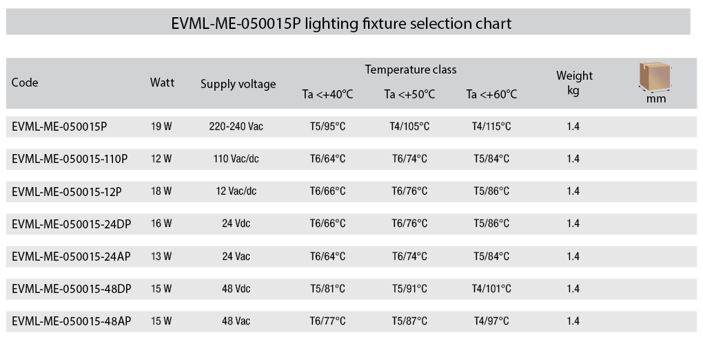 Đèn chiếu sáng EVML được thiết kế để cung cấp một loại đèn Low Bay có thể thay thế đèn sợi đốt tương đương với chi phí thấp hơn. Chúng phù hợp để chiếu sáng các khu vực cần hạn chế vật cản như đường hầm, lối đi, hành lang, cầu thang và cabin chỉ huy và điều khiển (mã EVML-ME-060…).