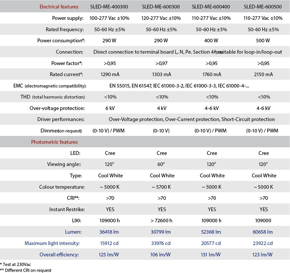 Dòng đèn pha SLED-ME ứng dụng công nghệ LED kết hợp thiết kế gọn nhẹ với hiệu suất cao về độ tin cậy theo thời gian, an toàn, hiệu quả và tiết kiệm năng lượng. Thân đèn dạng vây đóng vai trò tản nhiệt cho tấm LED, cho phép lắp đặt công suất chiếu sáng lớn hơn mà không làm giảm chất lượng của đèn LED. Kính bảo vệ phẳng có khả năng chống va đập và nhiệt độ cao, đảm bảo ánh sáng tuân thủ các quy định về môi trường xung quanh.