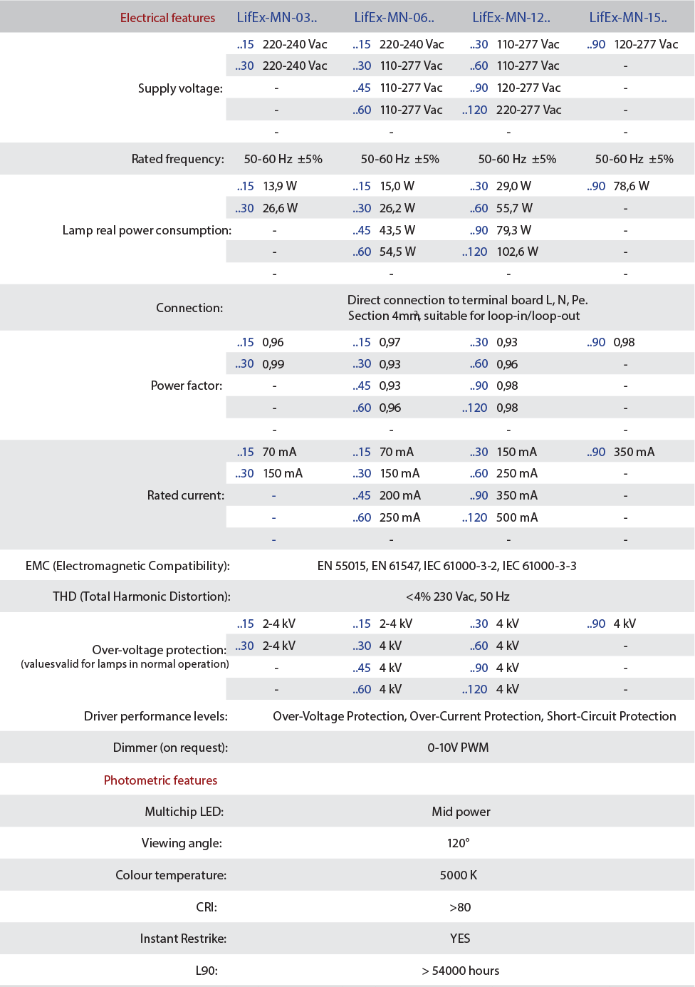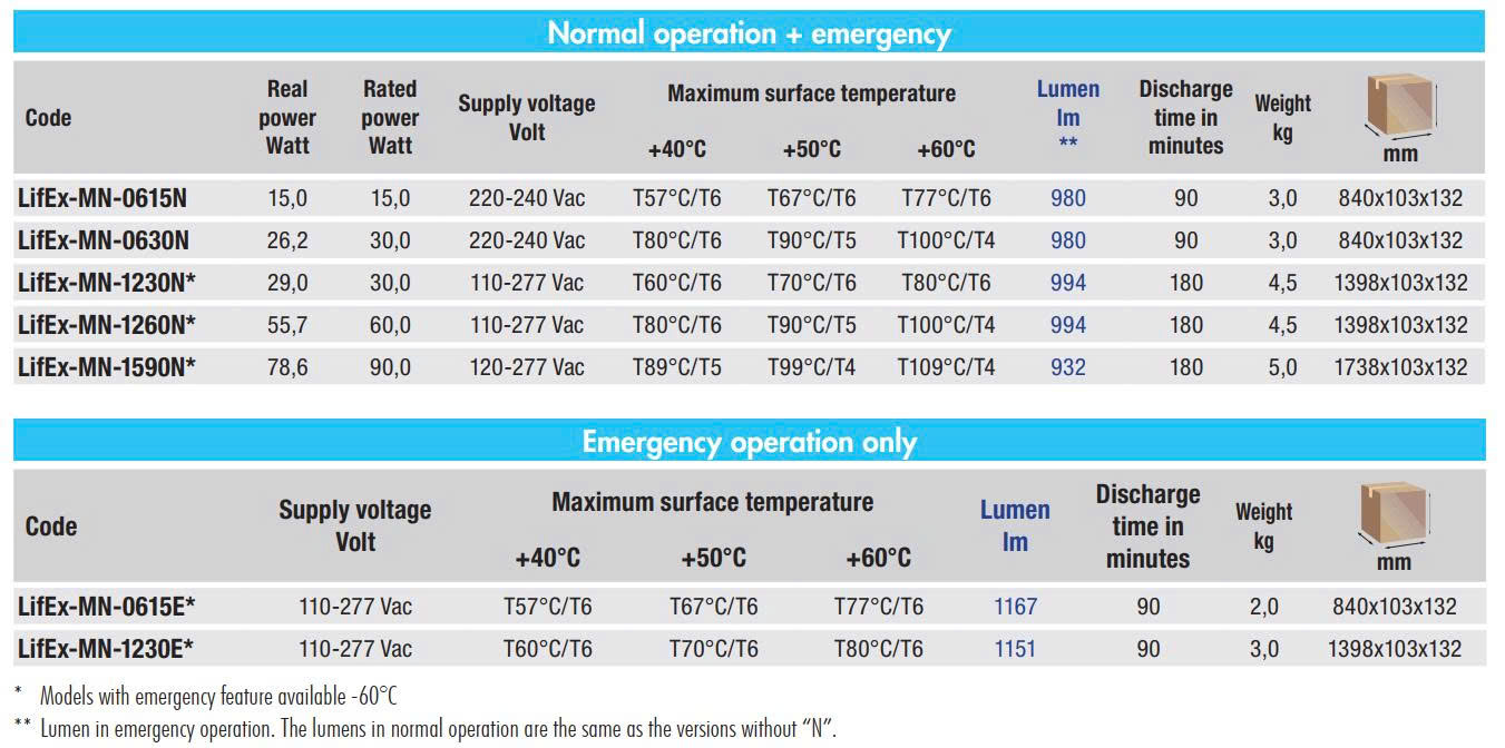Phiên bản “MN” được thiết kế để sử dụng trong các khu vực ATEX được phân loại là “Vùng 2” và “Vùng 21-22”, tức là nơi thiết bị được lắp đặt phải đảm bảo mức độ bảo vệ bình thường khi có hỗn hợp khí, hơi và sương (Vùng 2), và mức độ bảo vệ cao trước bụi và các hạt dễ cháy (Vùng 21). LifEx-MN có EPL (Mức độ Bảo vệ Thiết bị) Gc, Db.