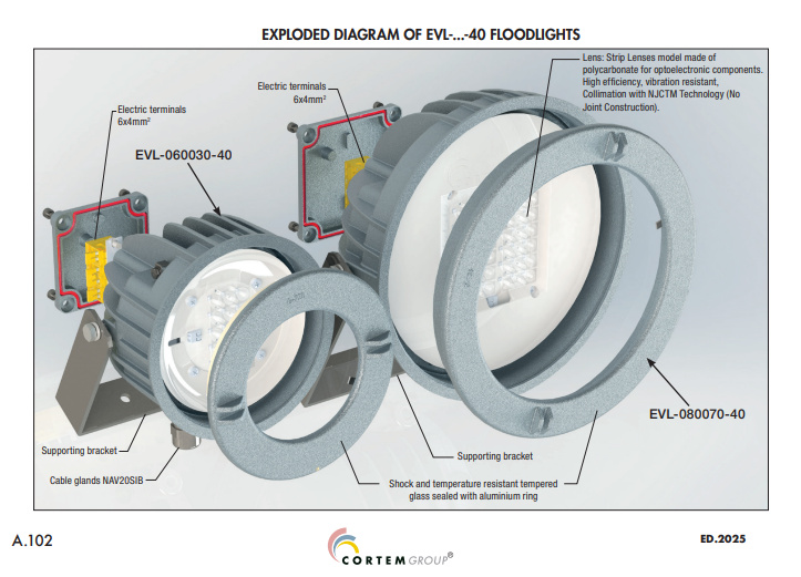 Đèn Pha Chống Nổ Cortem EVL – Giải Pháp Chiếu Sáng An Toàn Cho Khu Vực Nguy Hiểm (Zone 1, 2, 21, 22)