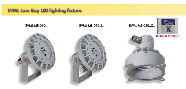 - Các model đặc biệt: EVML-50/O.. dùng để kiểm tra – chiếu sáng khoang chứa, bồn, bình chứa có khí/ hóa chất.