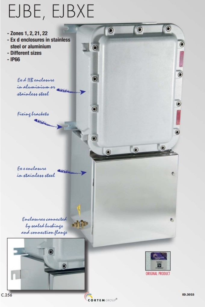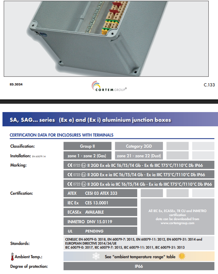 - Các hộp nối cáp Cortem Ex ehoặc Ex de (kết hợp cả hai phương pháp) cho độ an toàn tăng cường.