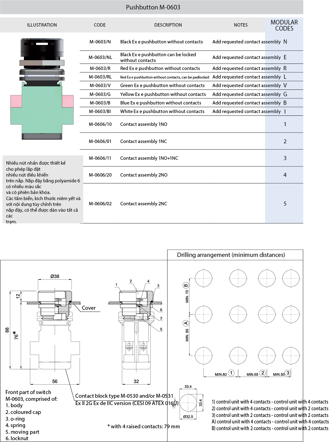 Các thiết bị M-0 cho phép các thiết bị điện hoặc cơ khí được lắp ráp bên trong tủ ‘Ex e’ có thể được mở hoặc đóng, và đèn báo hiệu trạng thái hoạt động. Các thành phần của trạm điều khiển được chế tạo bằng thép không gỉ để đảm bảo hiệu suất tối đa trong hầu hết mọi điều kiện môi trường.